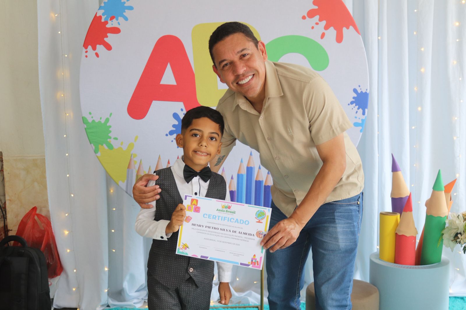 O evento, marcado por emoção e orgulho, contou com a presença do prefeito Jerry Correia, que fez questão de prestigiar o momento ao lado de familiares, educadores e comunidade local. As crianças participaram de apresentações culturais e receberam seus certificados, simbolizando o encerramento de mais uma etapa educacional.