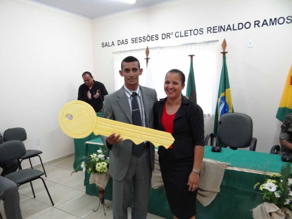 Neudo Lopes da Silva (PT), recebendo a chave simbólica da presidencia da Mesa Diretora da Câmara Municipal de Assis Brasil