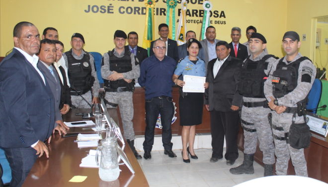 Durante a ordem do dia, A Câmara Municipal de acordo com os Arts. 91 e 92. Do Regimento Interno, concedeu ao 10º BATALHÃO DA POLÍCIA MILITAR DE BRASILEIA, representado pela Comandante Sra. Major, Ana Cássia, MOÇÃO DE APLAUSOS, em reconhecimento de forma pública, as atuações do Batalhão e as várias operações do serviço policial militar. Em atendimento ao Requerimento do vereador José Gabriele(PSB), aprovado na 25ª Sessão Ordinária, realizada no dia 03 de setembro de 2019.