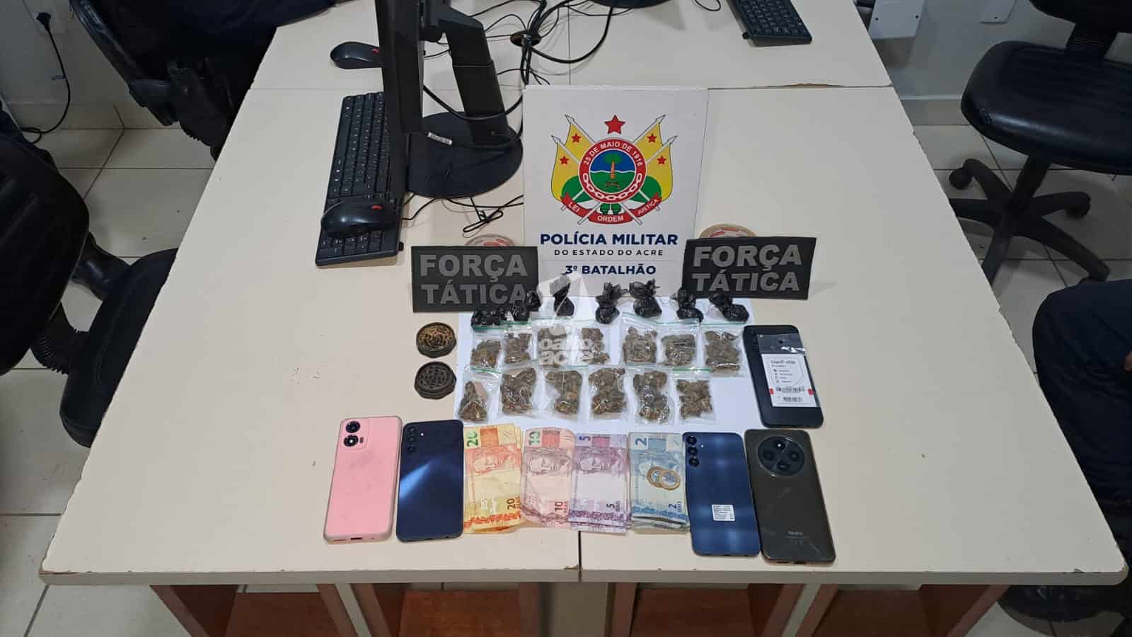 Uma equipe da Força Tática do 3º Batalhão da Polícia Militar apreendeu quatro adolescentes suspeitos de envolvimento com o tráfico de drogas, durante patrulhamento a pé no Beco São Jorge, na Rua São Francisco, bairro Tancredo Neves, em Rio Branco.