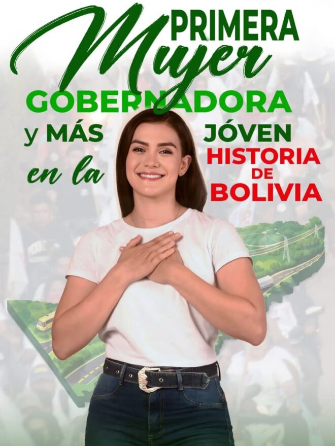 A engenheira eletromecânica Gabriela de Paiva Padilla foi eleita governadora do departamento de Pando, na Bolívia, nas eleições realizadas no domingo (22). Aos 32 anos, ela se torna a primeira mulher a ocupar o cargo e uma das mais jovens líderes regionais do país.