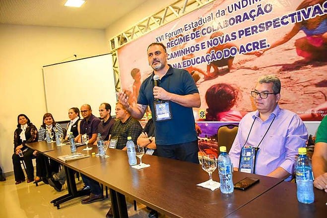 “O debate aqui é sobre o Fundeb, é sobre a climatização das salas de aulas, sobre a melhoria do ensino público. Enfim, estamos juntos em prol da melhoria do ensino no Acre”, explicou o presidente do Undime e secretário de Educação de Rio Branco, Moisés Diniz.