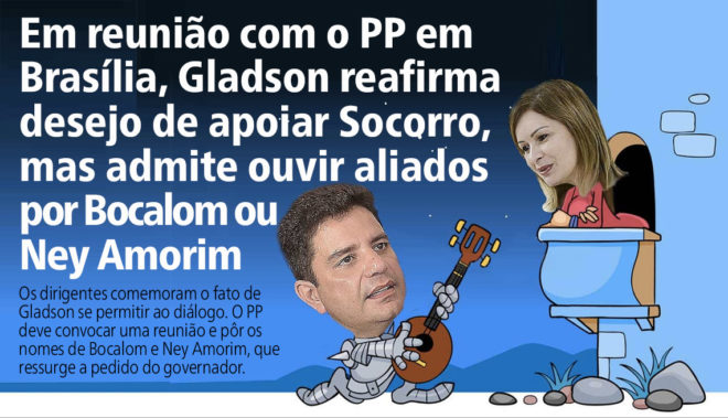 Os dirigentes comemoram o fato de Gladson se permitir ao diálogo. O PP deve convocar uma reunião e pôr os nomes de Bocalom e Ney Amorim, que ressurge a pedido do governador.