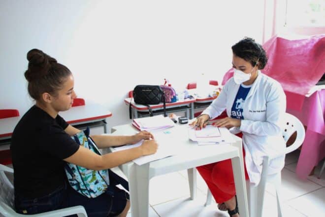 O Prefeito Sérgio Lopes acompanhado do Secretário de Saúde, Sérgio Mesquita, estiveram no sábado, 5, acompanhando de perto a realização do programa Saúde na Comunidade na escola Castelo Branco no km 20.
