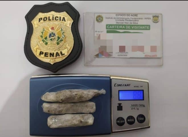 Policiais penais do Instituto de Administração Penitenciária do Acre (Iapen/AC) prenderam na manhã deste sábado, 9, uma visitante que tentava entrar com três tablete pesando 88 gramas de uma substância entorpecente aparentando ser maconha. O fato aconteceu na Unidade Penitenciária Manuel Neri da Silva, em Cruzeiro do Sul.