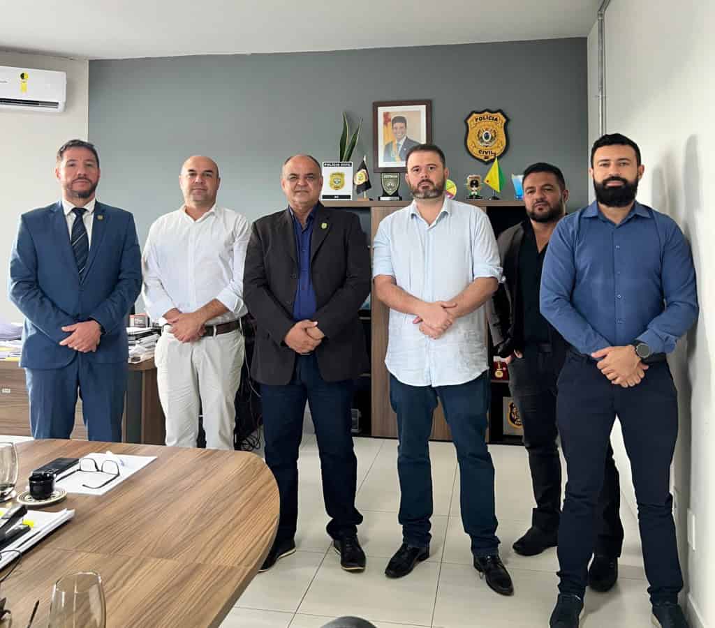 O delegado-geral da Polícia Civil do Acre (PCAC), Dr. Henrique Maciel, recebeu na última segunda-feira, 03, o coordenador-geral de Polícia Judiciária e Científica da Força Nacional, Pedro Filipe Cruz Cardoso de Andrade. O encontro contou com a presença do coordenador da Delegacia de Homicídios e Proteção à Pessoa (DHPP), Dr. Alcino Ferreira Júnior, do diretor da Academia de Polícia (Acadepol), Dr. Fabrízzio Sobreira, e do agente de polícia civil Adelzírio Maciel.