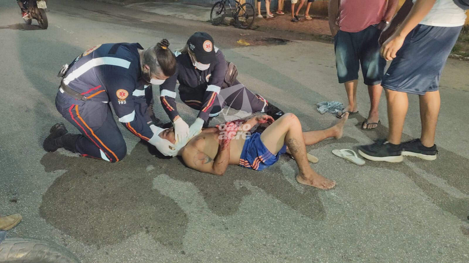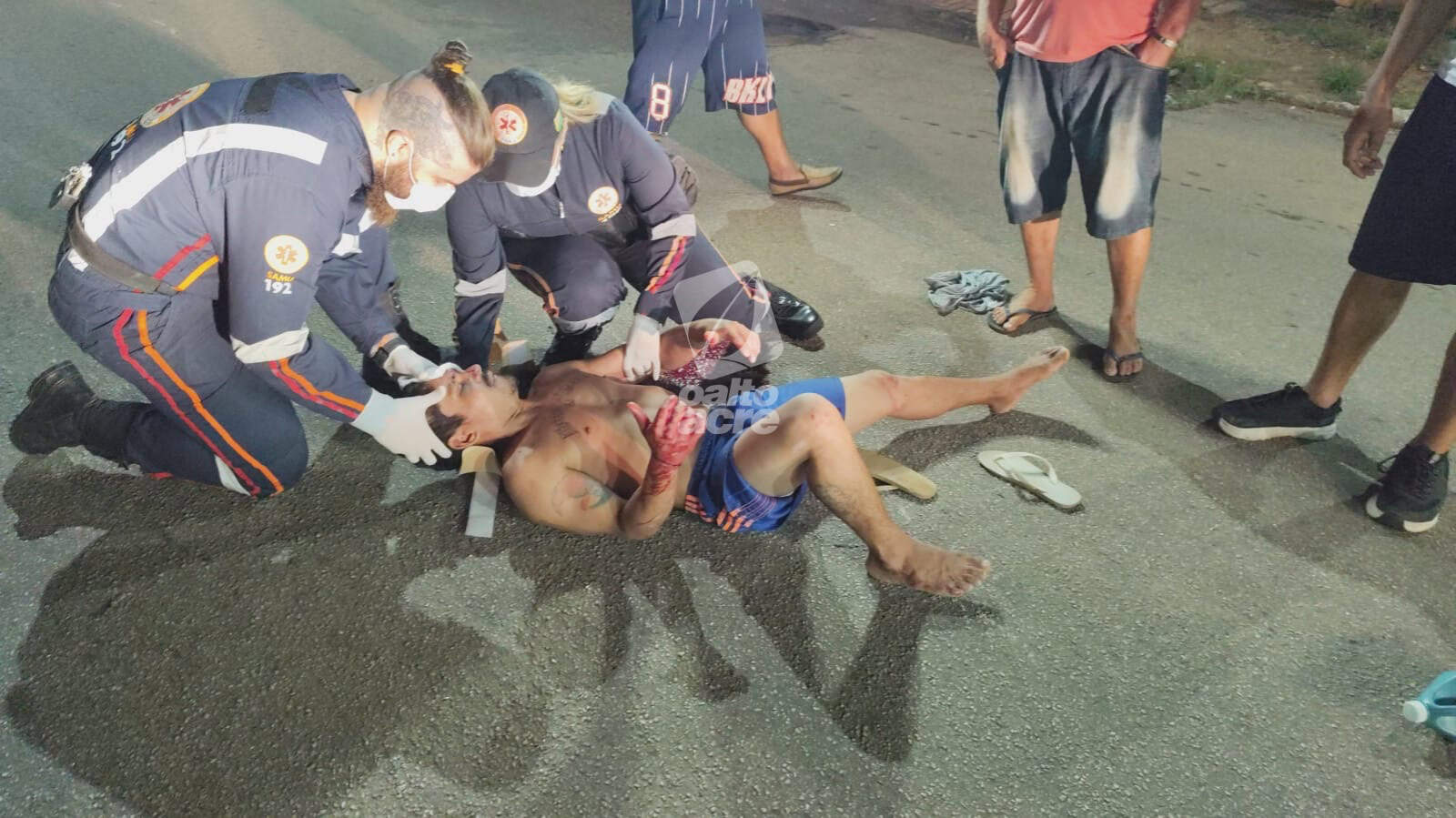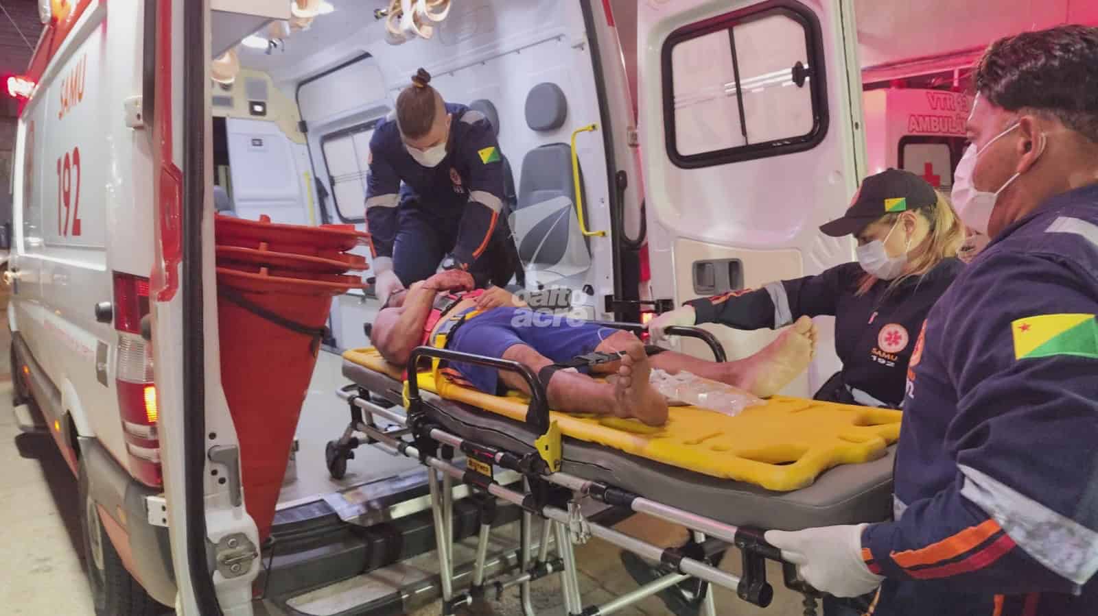 A vítima sofreu um corte na cabeça, além de dores no ombro e no pé direito. O Serviço de Atendimento Móvel de Urgência (Samu) foi acionado e enviou uma ambulância de suporte avançado. Após os primeiros atendimentos no local, Adecarlos foi encaminhado ao Pronto-Socorro de Rio Branco, onde permanece em estado estável.