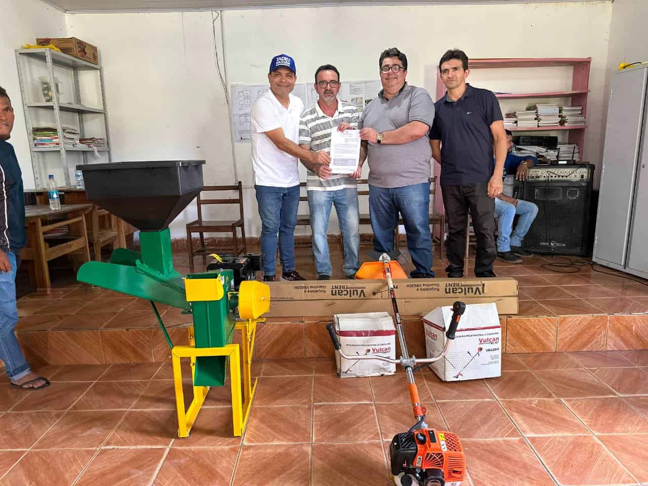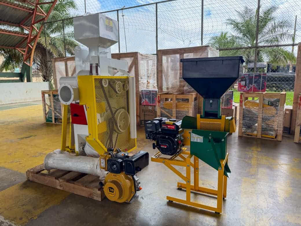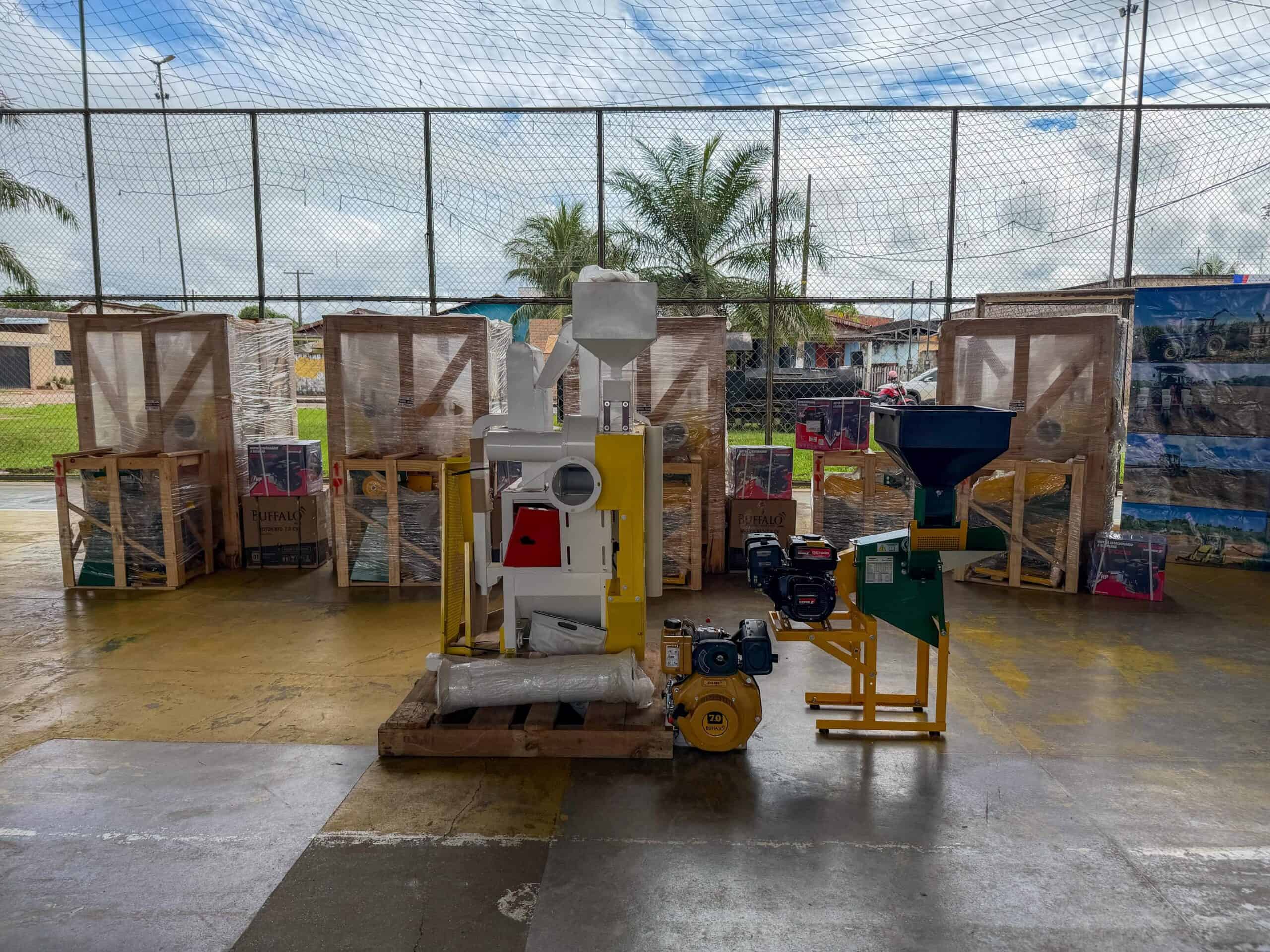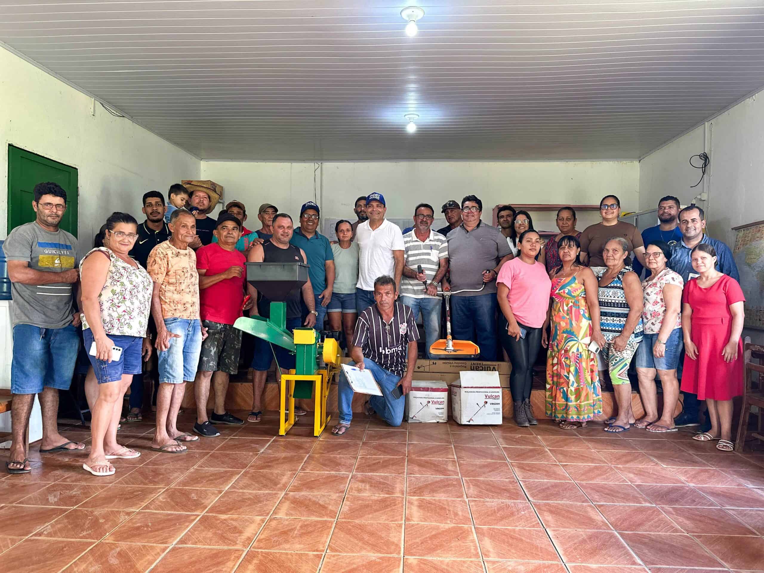 A solenidade ocorreu na quadra do bairro Ferreira Silva e beneficiou diretamente cinco comunidades rurais, com a entrega de cinco trituradores de grãos e cinco beneficiadores de arroz adquiridos por meio de emenda parlamentar do deputado Tadeu Hassem no valor de R$ 200 mil.