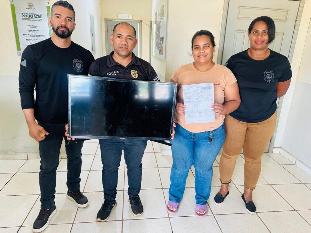 Na manhã desta segunda-feira, 13, a Polícia Civil do Acre (PCAC), por meio da Delegacia-Geral de Porto Acre, realizou a devolução de uma TV Smart de 32 polegadas à legítima proprietária. O aparelho havia sido furtado de uma residência localizada na zona rural do município.