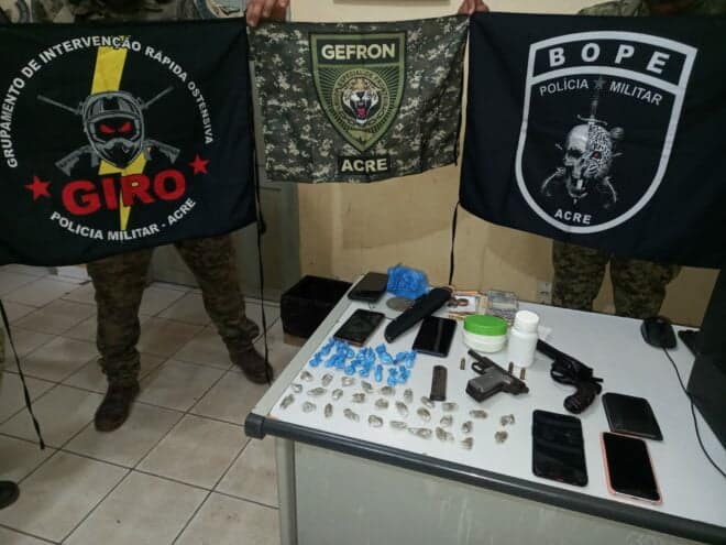 Segundo o comandante do 5º Batalhão do Alto Acre, Tenente Tales Rafael, uma operação chamada de ‘Saturação’ trabalhou por toda noite e madrugada, quando prenderam um suspeito que, segundo ele, saiu de casa para comprar drogas e foi abordado em uma blitz, portando drogas.