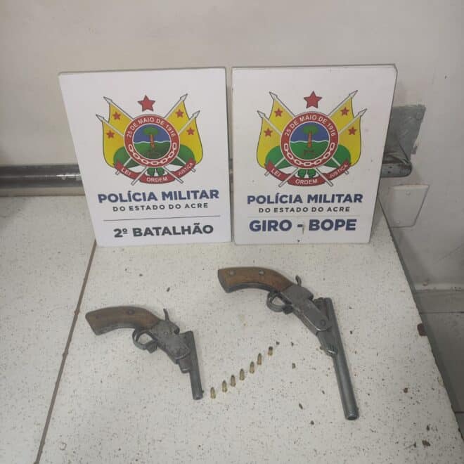 Policiais militares do 2º Batalhão da Polícia Militar do Acre (PMAC) realizaram a prisão de dois homens e a apreensão de um menor de idade no bairro Belo Jardim I, na noite desta sexta-feira, 30. Na ação, duas armas de fogo também foram apreendidas.