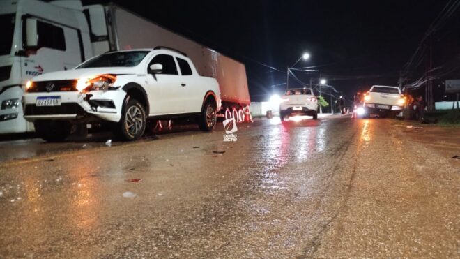 Um acidente de trânsito ocorreu no início da noite desta sexta-feira (7), na BR-317, KM 02, no bairro Por do Sol, em Epitaciolândia. O sinistro envolveu uma motocicleta de placa boliviana e duas caminhonetes, uma VW/Saveiro (placa QZX9AO8) e uma Toyota/Hilux (placa QAN2E14), deixando a condutora da motocicleta, identificada como Katiene, com ferimentos.