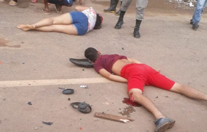 Um acidente grave ocorrido na manhã deste domingo, 16, por volta das 06h00, terminou com duas vitimas, sendo uma mulher identificada como Sigline Maranhão Roberto, que registrou ferimentos leves e escoriações. Já o condutor da moto, Thalisson Silva Soares, de 23 anos, teve ferimentos mais graves e fratura na região do joelho.