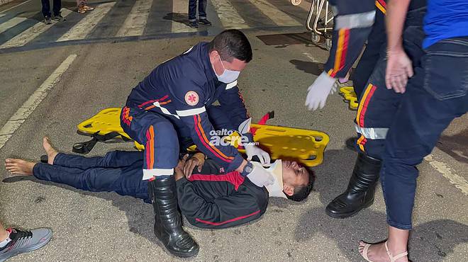 Um incidente ocorreu na noite desta terça-feira (14) em Rio Branco, quando um morador em situação de rua, identificado como Kelcio Alves Lustosa, 42 anos, pulou na frente de uma motocicleta, resultando em um acidente de trânsito. O episódio deixou três pessoas feridas, incluindo o motociclista Antônio Pablo Cruz do Nascimento, 21 anos, a passageira Janaína Silva da Costa, 20 anos, e o próprio Kelcio.