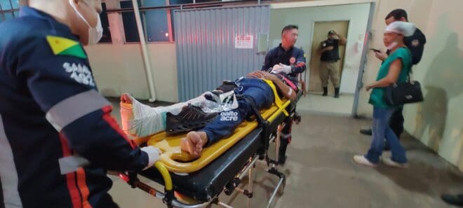 Um acidente envolvendo um Ford Ecosport e uma moto Honda Fan 125 deixou o motociclista Genival de Melo Baia, 27 anos, com fratura exposta na perna e escoriações pelo corpo na noite desta quinta-feira (3), na Avenida Sobral, no bairro Plácido de Castro, em Rio Branco.