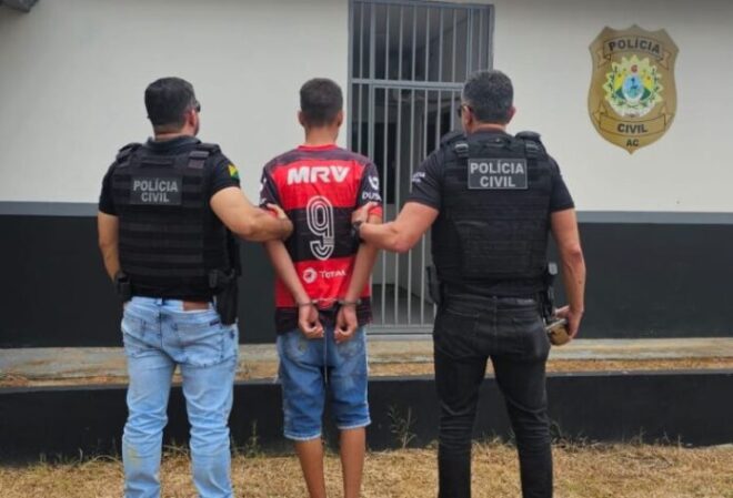 Um adolescente de 13 anos foi apreendido pela Polícia Civil de Rodrigues Alves na quinta-feira (29) após ser encontrado com aproximadamente 4,5 quilos de drogas, entre crack e cocaína, além de balanças de precisão e material para acondicionamento. A ação partiu de uma denúncia anônima que indicava que o menor estava guardando entorpecentes a mando de traficantes da região.