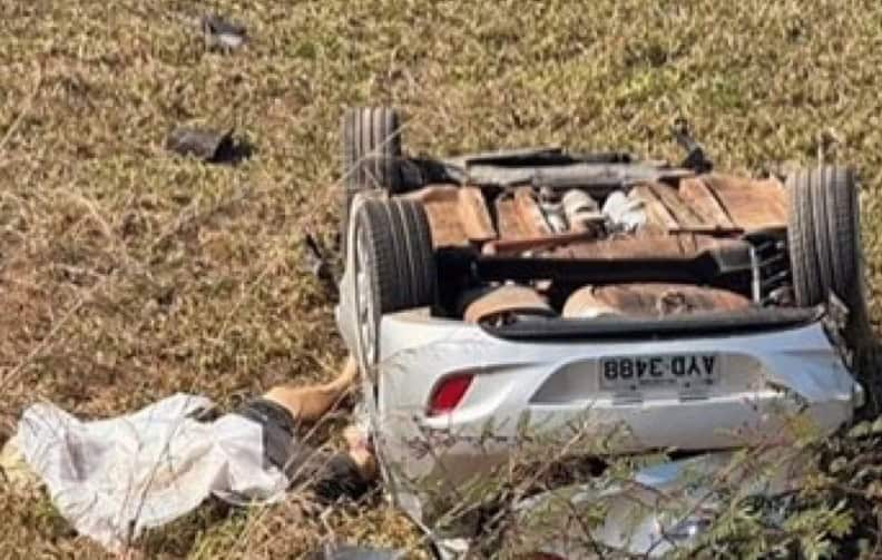 Cristiano Tavares de Lima, marido da motorista, não usava cinto de segurança e foi arremessado para fora do veículo durante o capotamento, vindo a óbito ainda no local. Foto: captada