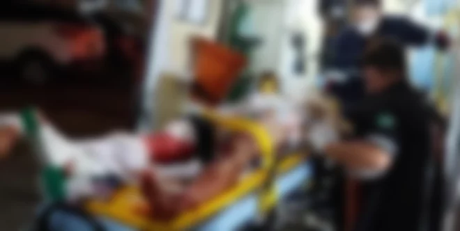 Railton Félix deu entrada na unidade de saúde em estado de saúde estável, porém, grave, pois a vítima teve dilaceração da perna direita.
