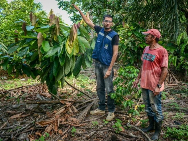 Técnico do Idaf visita produtor de cupuaçu no município de Mâncio Lima. Foto: Marcos Santos/Secom