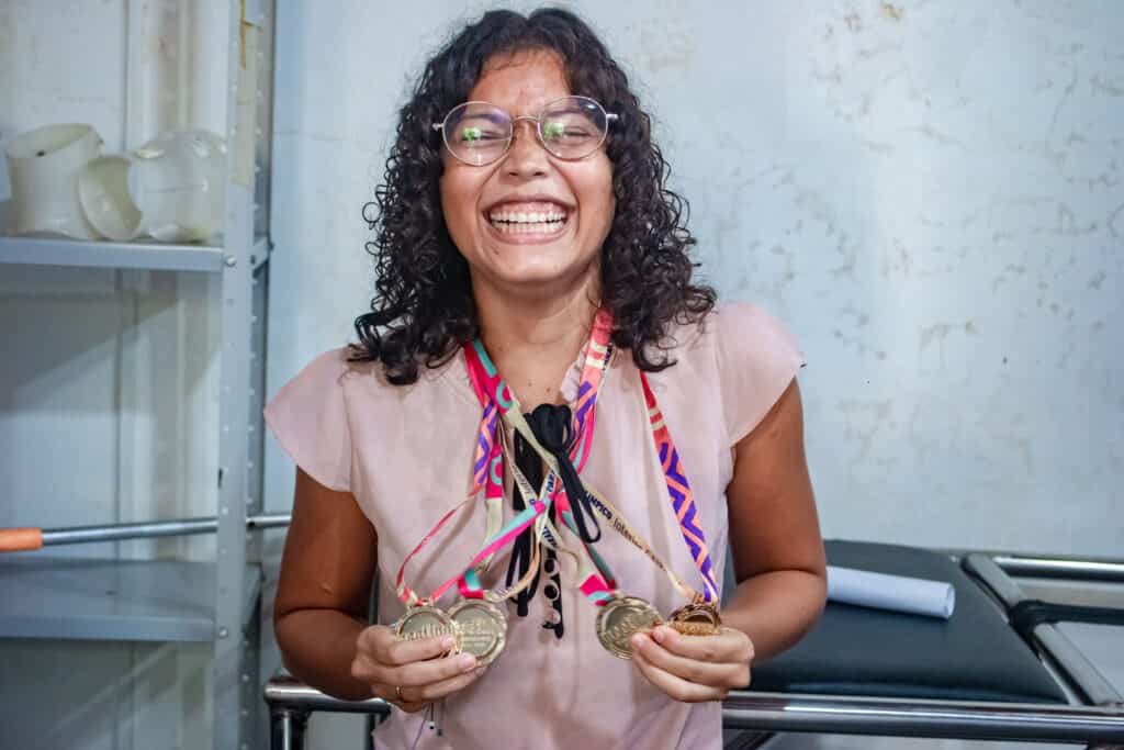 Acompanhada desde o nascimento pela Oficina Ortopédica do Estado, jovem medalhista nacional fala sobre a importância do apoio recebido