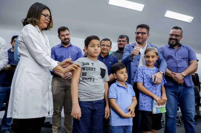 Pedro Henrique foi o primeiro acreano vacinado contra dengue. Foto: Neto Lucena/Secom