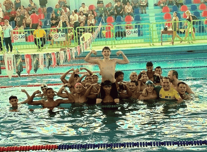 Nadadores acreano comemoraram o título com um mergulho coletivo