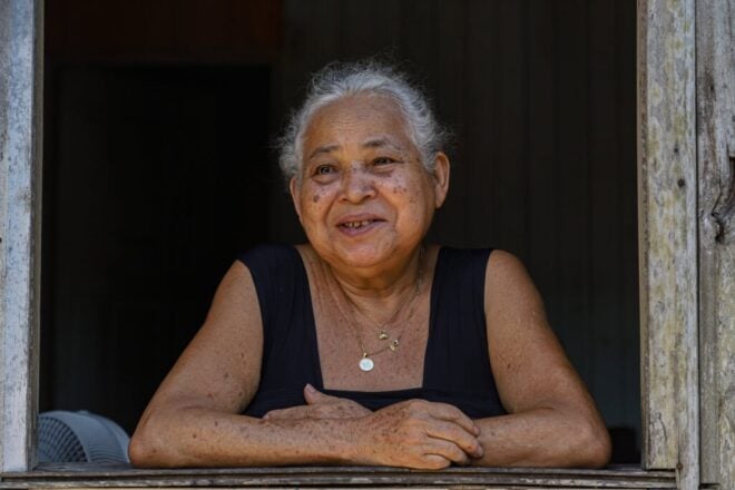 Marina Mendonça, que no ano passado, precisou procurar o médico devido à fumaça, fala como os focos de incêndio reduziram em sua comunidade. Foto: Alice Leão/Secom