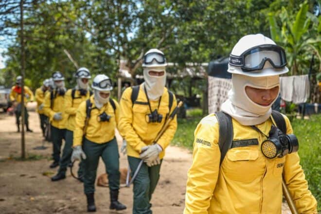 Brigadistas comunitários ajudam na contenção e prevenção do fogo dentro de suas comunidades. Foto: Alice Leão/Secom