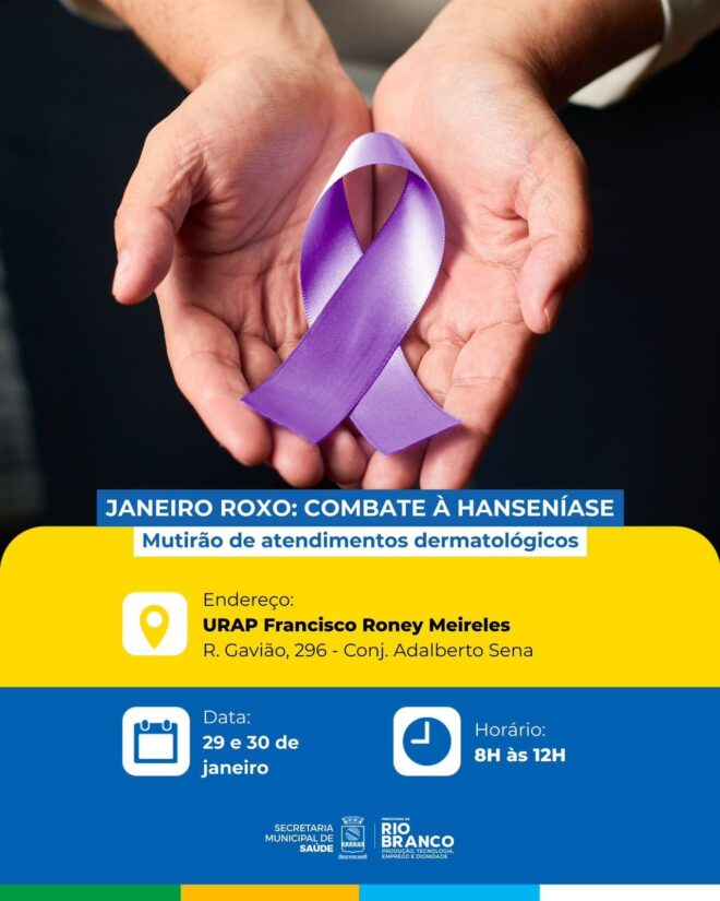 Com o objetivo de facilitar o acesso da população aos serviços de saúde e reforçar o combate à hanseníase, a Prefeitura de Rio Branco promoverá, nos dias 29 e 30, uma ação concentrada de atendimentos dermatológicos. A iniciativa será realizada no período da manhã, das 8h às 12h, na URAP Francisco Roney Meireles, situada no Conjunto Adalberto Sena, e será voltada especialmente para a detecção precoce da doença.