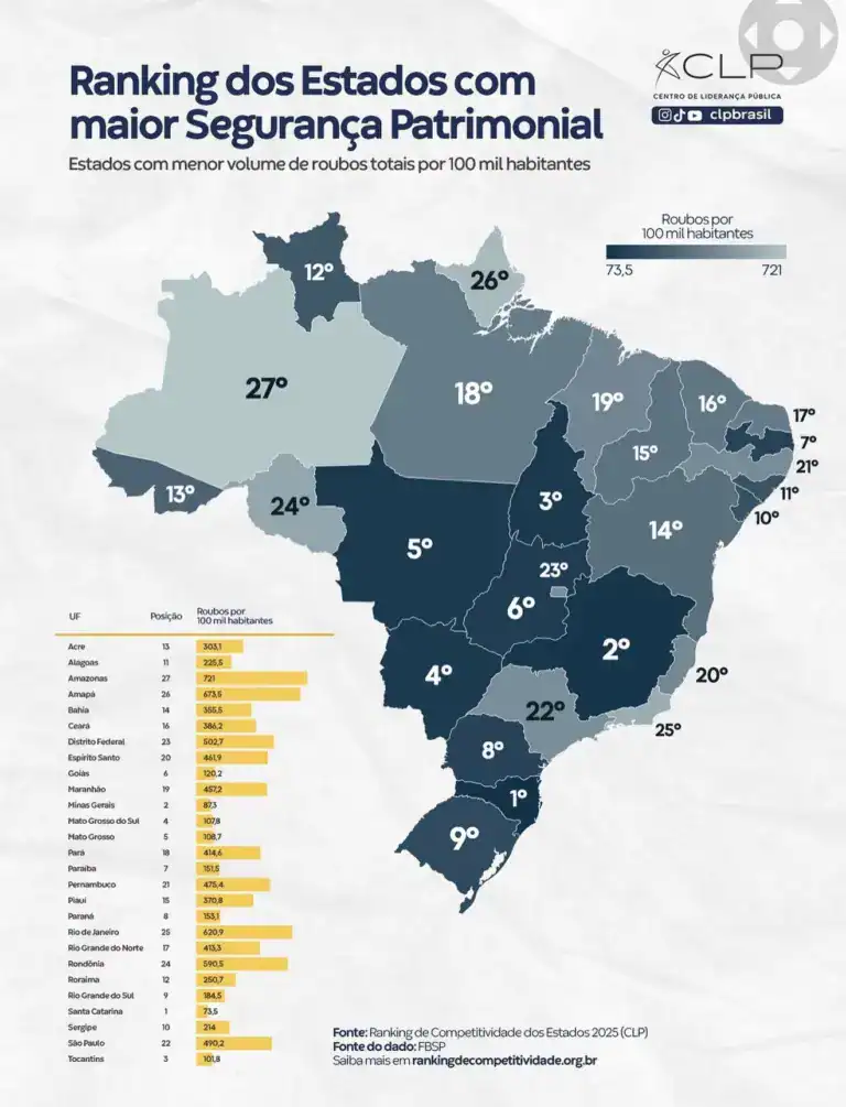 O indicador utilizado no ranking considera as diferentes tipificações de roubo previstas no artigo 157 do Código Penal. Os números totais podem variar conforme a metodologia e o detalhamento adotados por cada estado no Anuário da Segurança Pública.