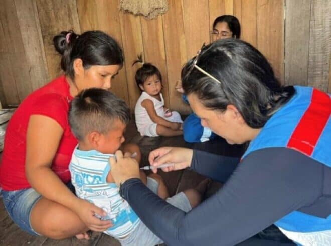 Ação de vacinação em aldeias de Assis Brasil, no interior do Acre. Foto: Arquivo EMS