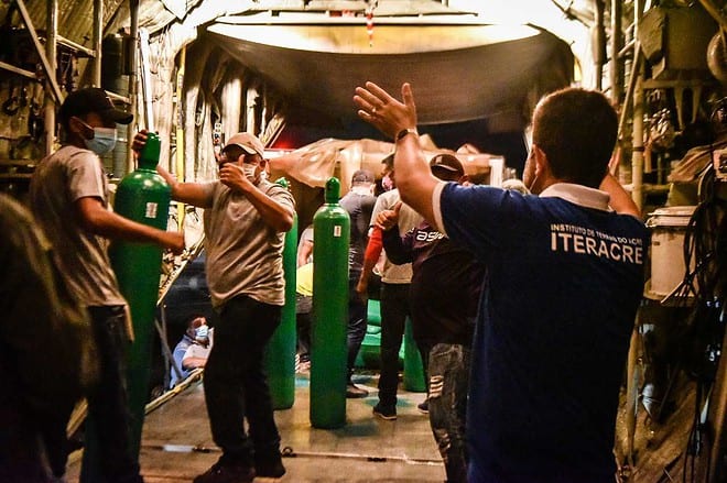 Para dar suporte às unidades de saúde pública do Estado do Acre, mais 140 cilindros de oxigênio, fornecidos pelo Ministério da Saúde (MS) e transportados pela Força Aérea Brasileira (FAB), chegaram na madrugada desta sexta-feira, 26, no território acreano.