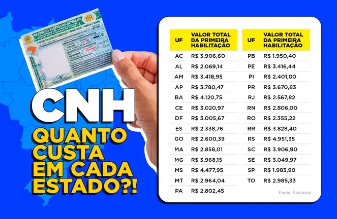 No ranking nacional, o estado aparece como o 6º mais caro do país, atrás apenas do Rio Grande do Sul, que lidera o ranking de CNHs mais caras do país com custo médio de R$4.951,35, para a categoria AB (moto e carro), seguido do Mato Grosso do Sul, (R$4.477,95); da Bahia (R$ 4.120,75), de Minas Gerais (R$ 3 968,15) e de Santa Catarina, o valor é de R$3. 906,90.