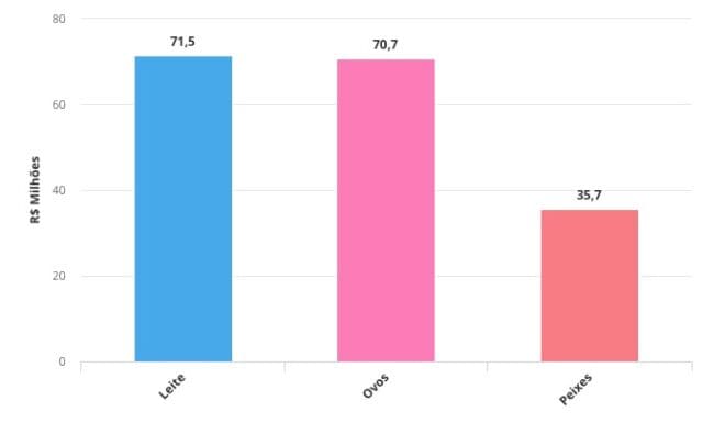 O leite e os ovos foram os principais responsáveis pelo avanço do valor da produção. O leite somou R$ 71,5 milhões, crescimento de 14%, puxado pelo preço médio. Já os ovos chegaram a R$ 70,7 milhões, alta de 34%, com aumento da produção.