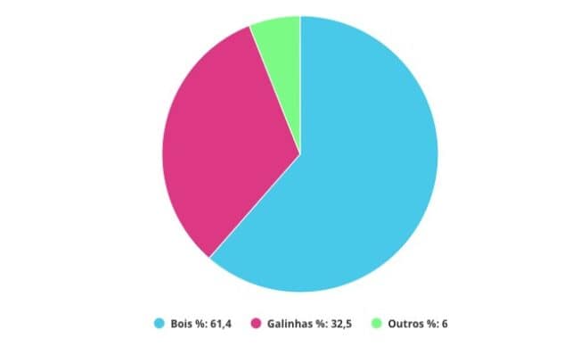 Sozinhos, os bois (5,1 milhões) e as galinhas (2,7 milhões) representaram 96% do total de 8,3 milhões de cabeças.