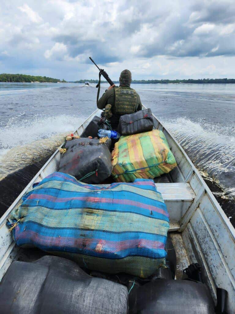 A droga atravessa o rio Putumayo e entra no país pela região amazônica, alcançando os estados de Amazonas e Acre, onde é redistribuída por facções locais ligadas ao Comando Vermelho. Foto: captada