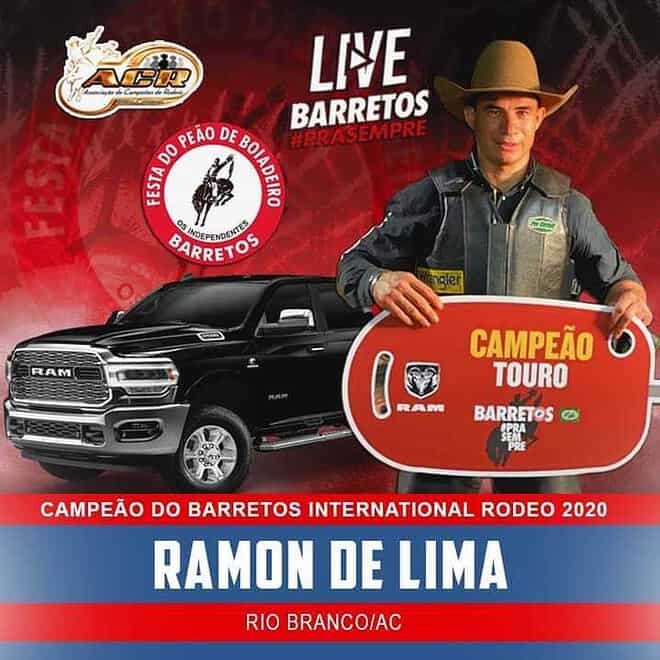 O acreano Ramon de Lima natural de Rio Branco, estado do Acre, foi campeão na noite de hoje, dia 30, em Barretos no interior de São Paulo. A disputa foi transmitida ao vivo pela internet e o grande prêmio em sua categoria, seria uma caminhonete no valor de R$ 350 mil.
