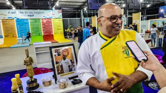 O chef acreano Deocleciano Brito, que participou como jurado em uma prova no reality show MasterChef em 2016, está na Expoacre 2023 para mostrar seu trabalho e divulgar os novos cursos.