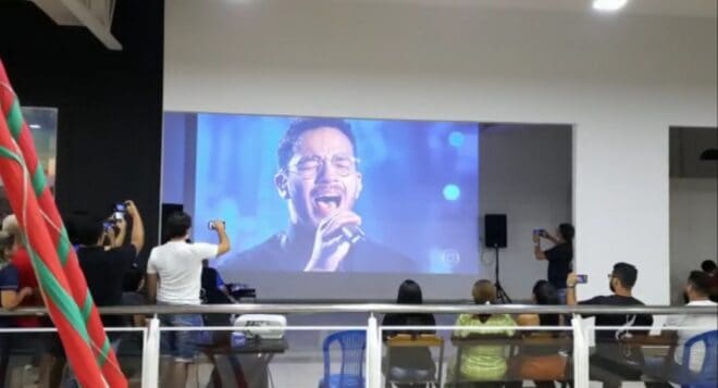 A apresentação foi assistida em um telão no Shopping Copacabana, em Cruzeiro do Sul, cidade natal do cantor. A festa doi organizada por colegas de Gustavo do Conservatório de Música, do grupo Garotos do Sótão, alunos, ex-alunos, diretores e a mãe dele, dona Graça Matias.” Ele cantou tão lindo quanto na primeira vez”, citou emocionada.