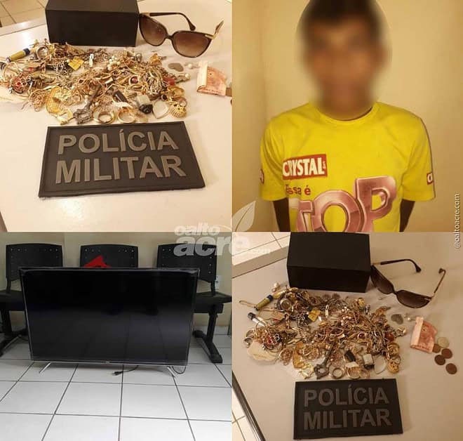 Ao ser abordado com uma TV de 43 polegadas nas costas, uma caixa de som e outra pequena contendo joias, não pensaram duas vezes e o detiveram até a chegada da viatura da Polícia no local e ser entregue.