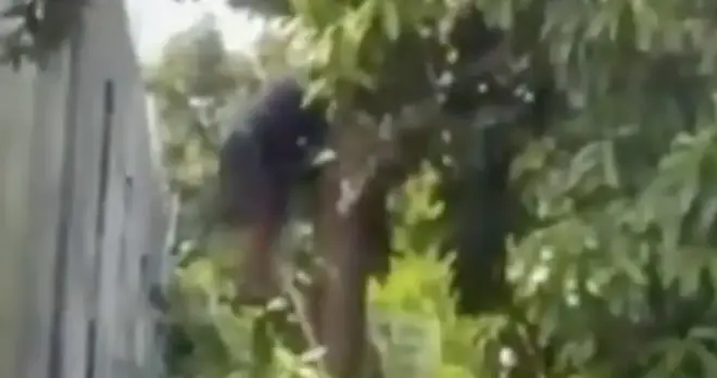 Um vídeo que circula nas redes sociais mostra o momento em que o jovem aparece em cima da árvore, com a zagaia na perna. O momento foi registrado por moradores que passavam pelo local.