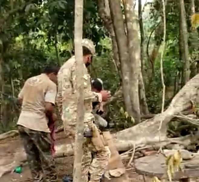 A PM foi até a propriedade da família dos suspeitos, que fica no interior do Acre, cumprir o mandado de internação do menor e um de prisão contra o suspeito do estupro, mas ele se escondeu na mata. Duas armas de fogo que teriam sido usadas no crime foram apreendidas.