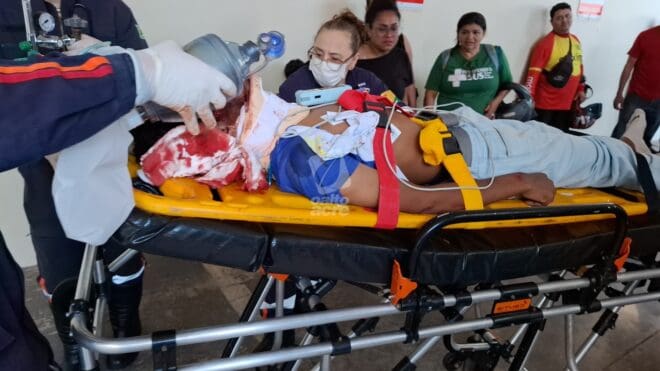 O Serviço de Atendimento Móvel de Urgência (Samu) foi acionado e enviou uma ambulância de suporte avançado. A equipe médica intubou e estabilizou o adolescente ainda no local, encaminhando-o em estado grave ao Pronto-Socorro de Rio Branco.