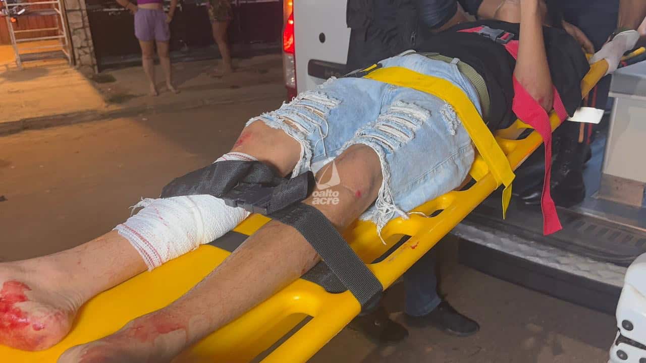 Dois jovens ficaram feridos na tarde desta quinta-feira (4) após um grave acidente de motocicleta registrado na Rodovia AC-475, no trecho que liga os municípios de Acrelândia e Plácido de Castro. O condutor da moto, João Gustavo Muniz, de 19 anos, perdeu o controle do veículo ao passar por uma curva. A motocicleta saiu da pista, arrancou uma estaca e arremessou os dois ocupantes a cerca de oito metros, lançando-os em uma área de pasto.