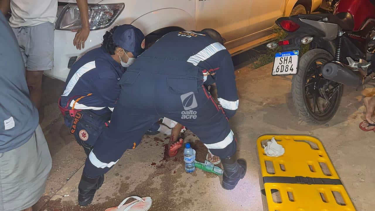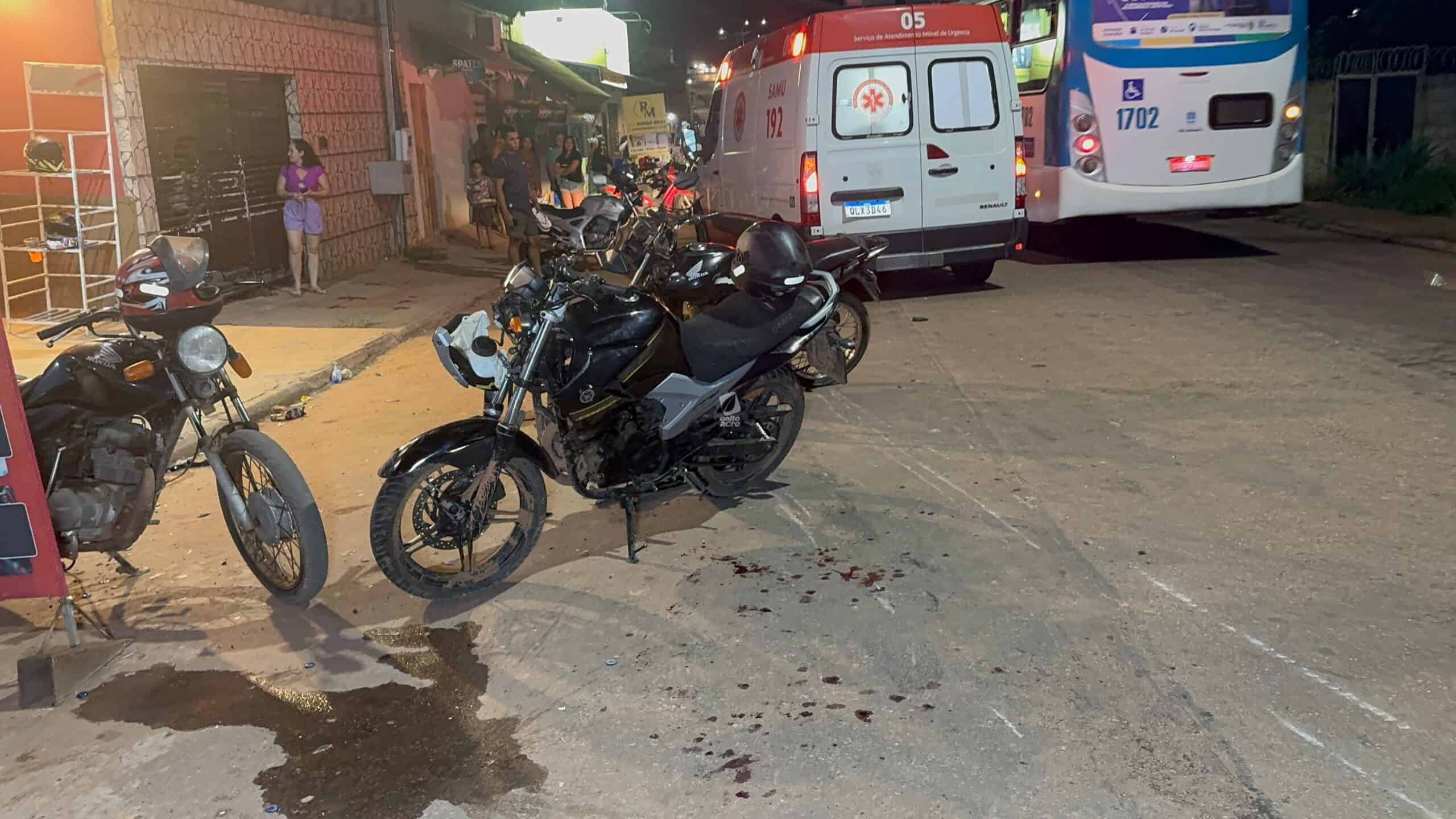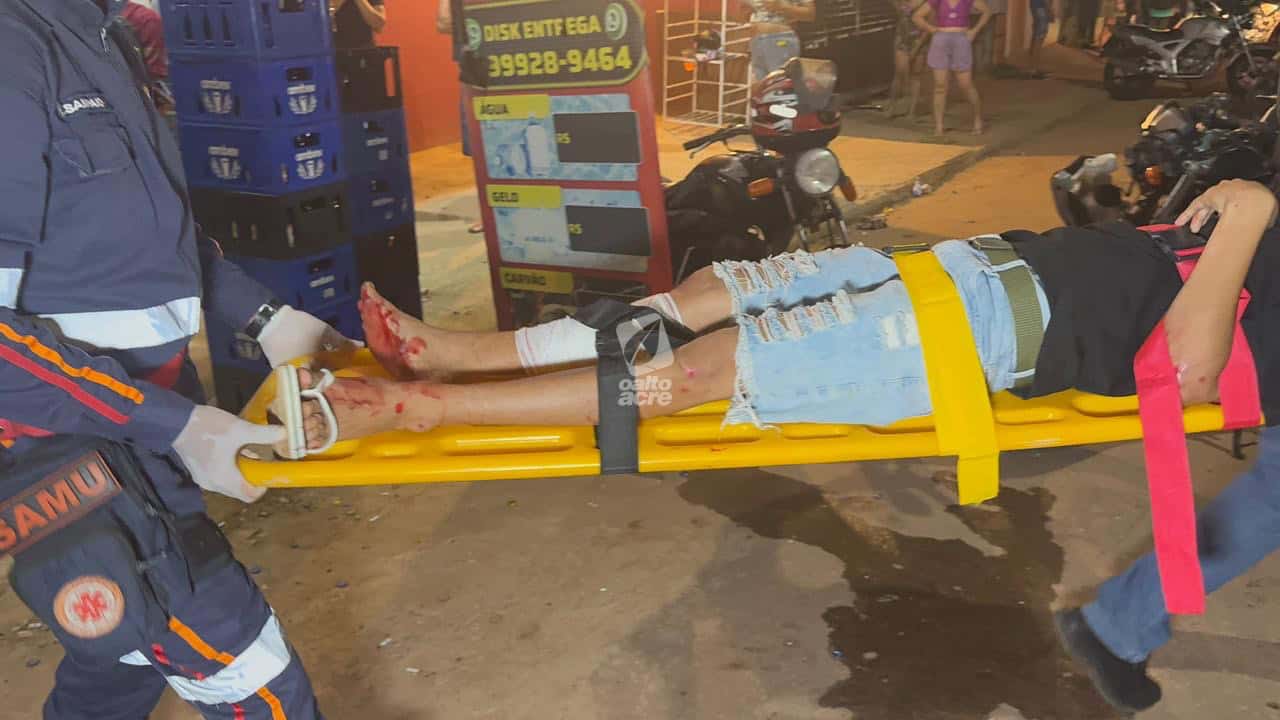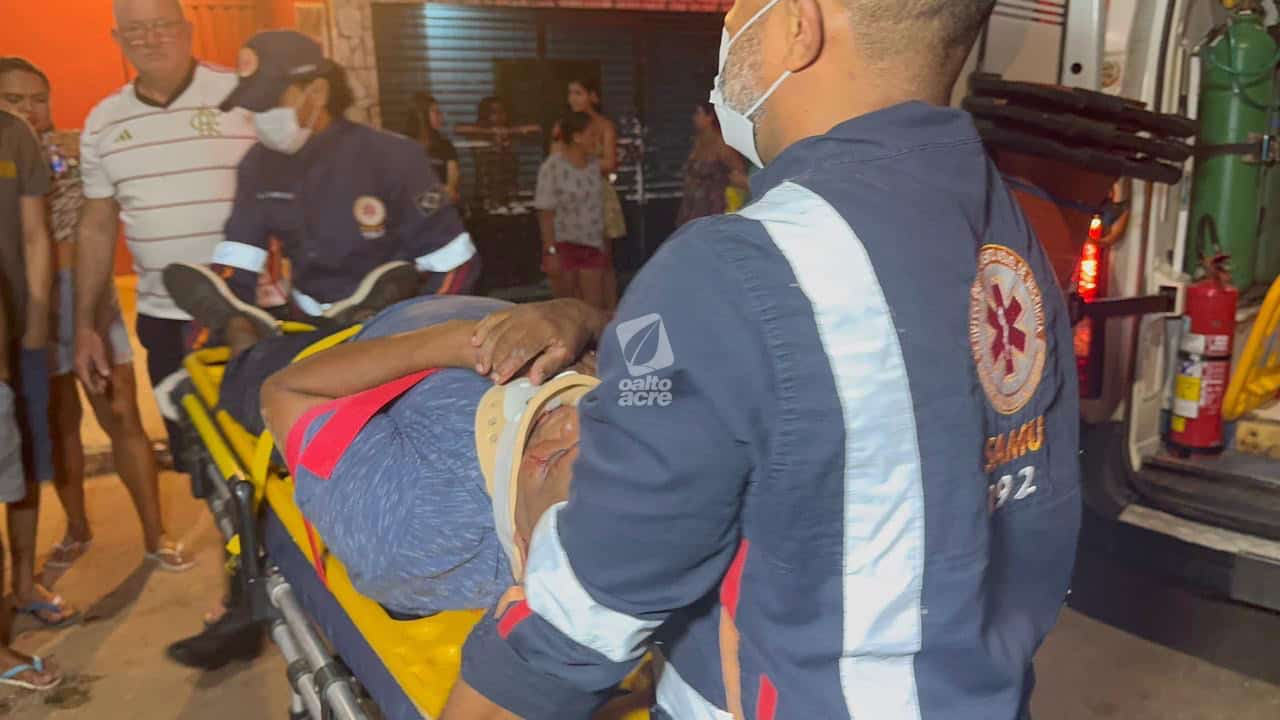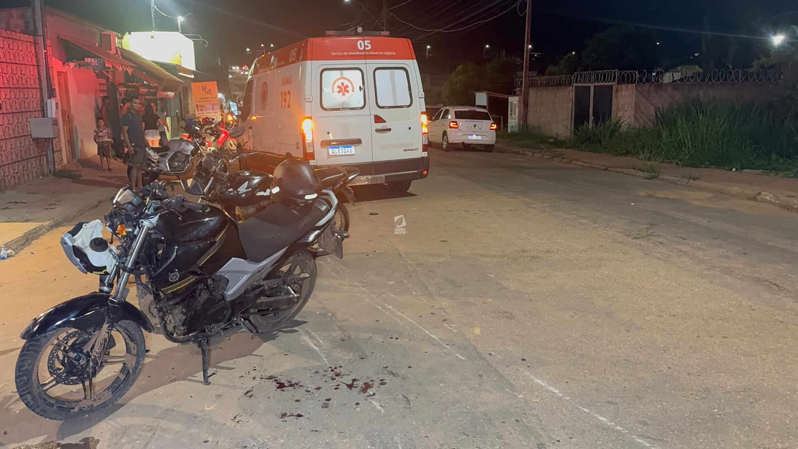 Três pessoas ficaram feridas em um acidente envolvendo duas motocicletas na noite deste sábado (1º), na Estrada do São Francisco, bairro São Francisco, em Rio Branco. As vítimas foram identificadas como Josenildo Paulino da Silva, de 51 anos, e dois adolescentes, de 15 e 16 anos.