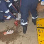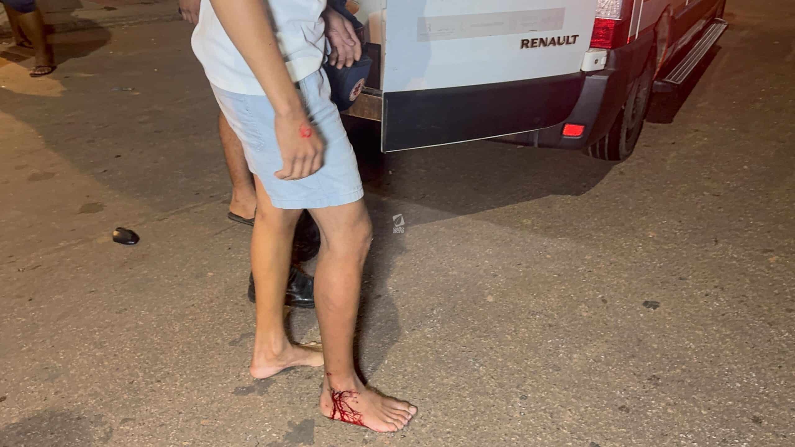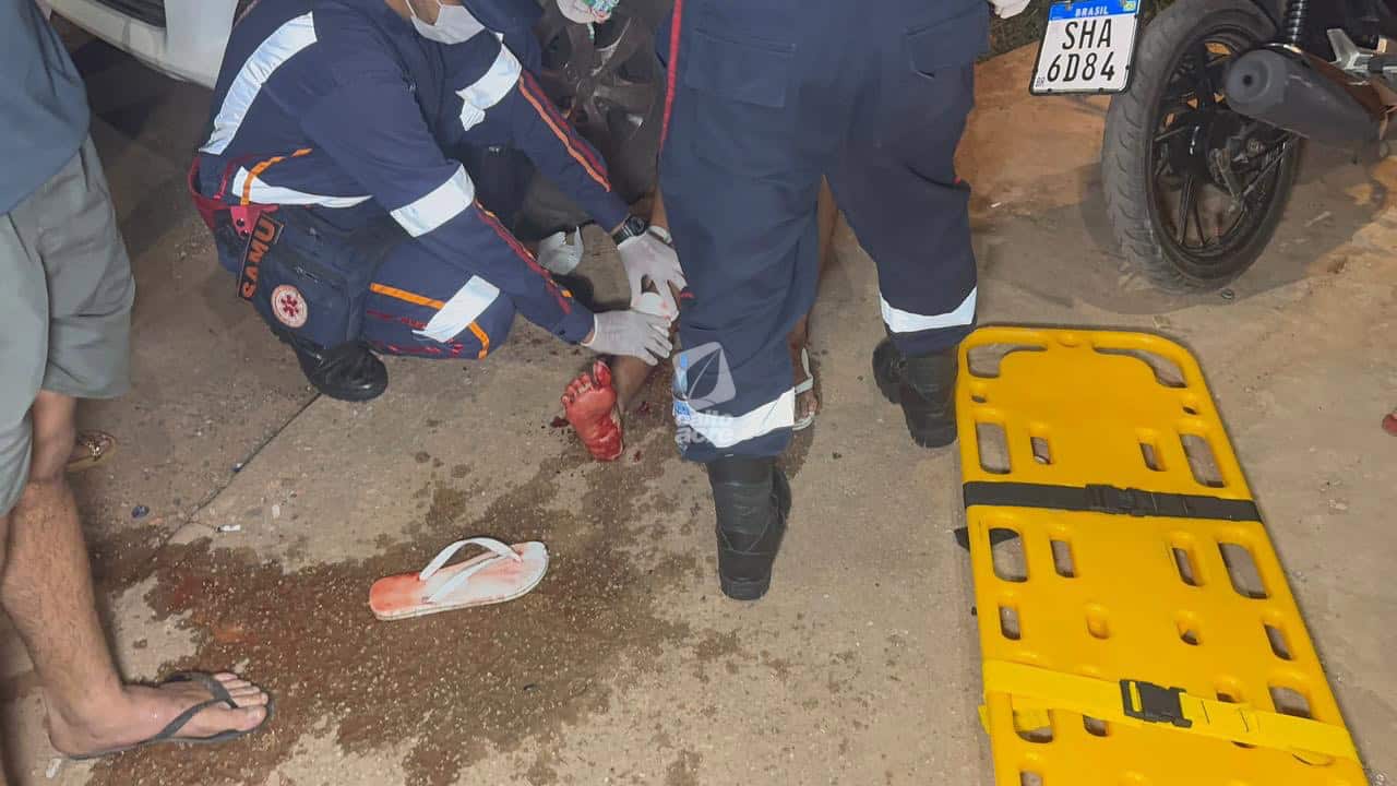 Com a batida, o motociclista de 51 anos foi arremessado ao asfalto e perdeu a consciência. O adolescente que pilotava a moto sofreu escoriações e um corte profundo na perna direita, enquanto o garupa teve ferimento grave no tornozelo direito.