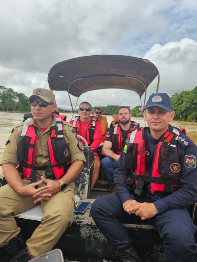 Em Sena Madureira, Polícia Militar e Corpo de Bombeiros atuam em conjunto para auxiliar famílias afetadas pela enchente do Rio Iaco. As equipes fazem visitas periódicas aos abrigos, com o objetivo de assegurar ordem pública, apoio institucional e a proteção dos desalojados.
