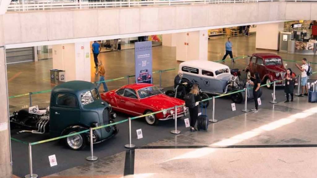 Aeroporto de Brasília surpreende passageiros com exposição de carros e motos antigas