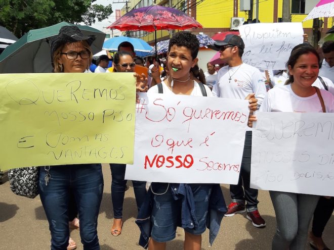 Segundo Raimunda Nonata, representante da categoria, a prefeitura ofertou salário no valor de R$ 1.014,00, abaixo do valor nacional, aprovado no congresso.