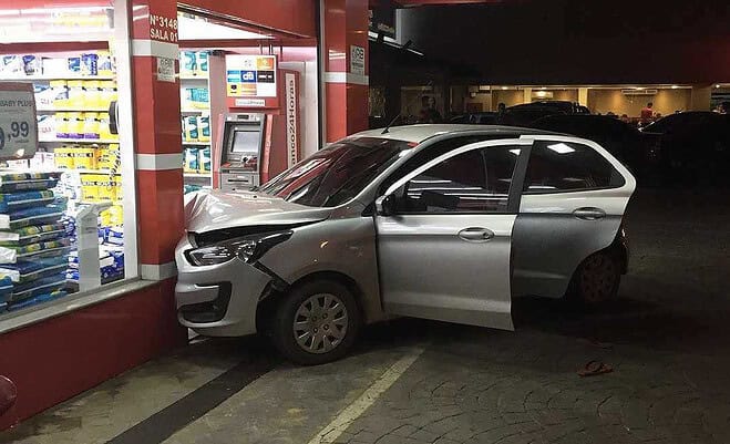 Desesperado, o motorista abriu a porta e pulou do veículo ainda em movimento. Desgovernado, o carro subiu na calçada e bateu frente de uma drogaria. O agente penitenciário sacou a arma e efetuou vários tiros contra os bandidos.